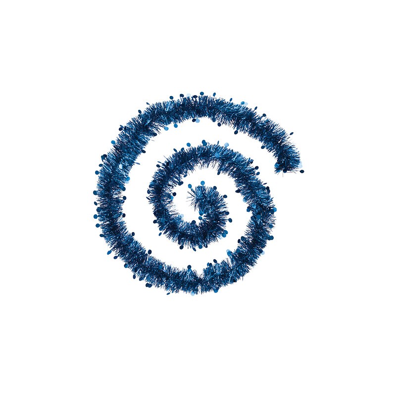 Textura y profundidad en azul medianoche Guirnalda de lunares en relieve, 4 capas, en tono azul medianoche. Con sus 2 metros de longitud y 10 cm de ancho, aporta volumen y sofisticación a árboles, chimeneas o escaparates festivos.