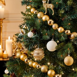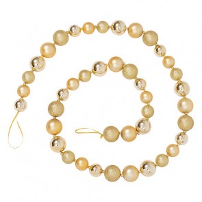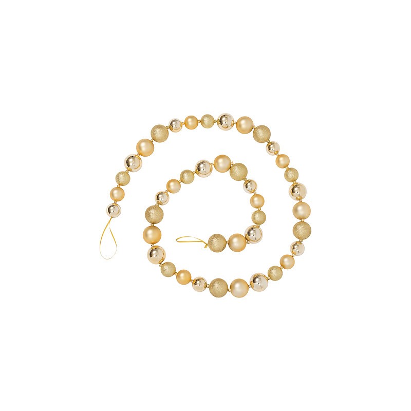 Guirnalda decorativa de bolas doradas, 2 metros de largo. Aporta ritmo, volumen y un toque festivo a árboles, barandillas o composiciones navideñas con luz propia.