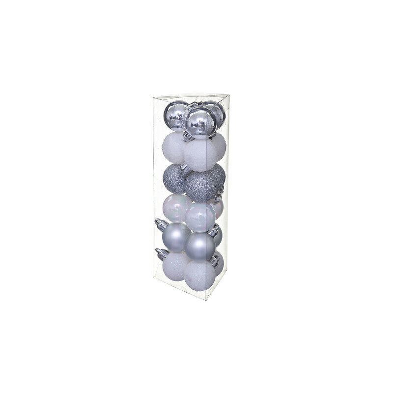 Juego de 18 bolas de 3 cm de COLO blanco plateado.