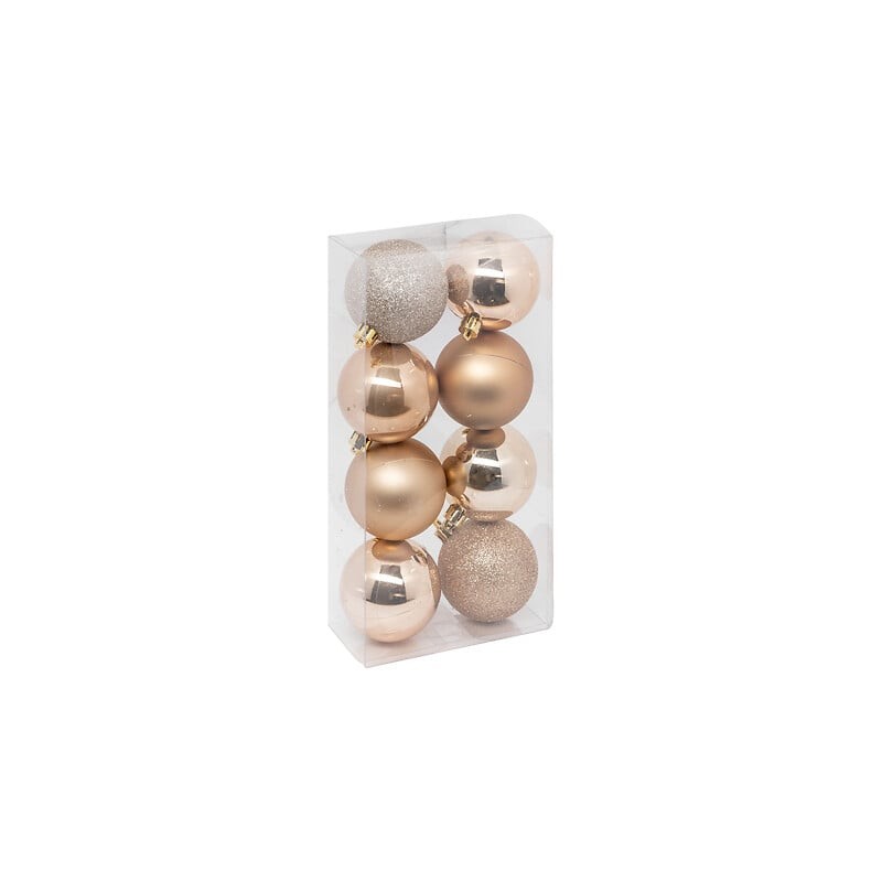 Navidad en tonos suaves y sofisticados Este juego de 8 bolas nude de 7 cm aporta calidez, estilo y un toque moderno a tu árbol. Perfectas para una decoración delicada y luminosa.