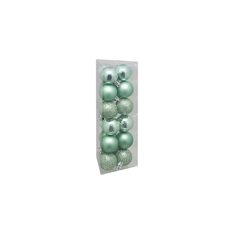 Navidad en verde almendra, suave y natural Este lote de 18 bolas de 3 cm en tono verde almendra aporta frescura y armonía a tu decoración. Perfectas para coronas, centros de mesa o árboles pequeños con estilo moderno.