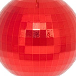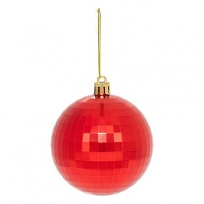 bola decorativa de 8 cm de diámetro en poliestireno reciclado, con efecto espejo en color rojo. Aporta luz, volumen y un toque vibrante a árboles, guirnaldas o composiciones navideñas sostenibles.