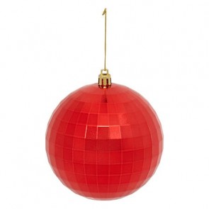 bola decorativa de 10 cm de diámetro en poliestireno reciclado, con efecto espejo en color rojo. Aporta luz, volumen y un toque vibrante a árboles, guirnaldas o composiciones navideñas sostenibles.