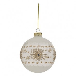 Bola de vidrio con copo de nieve dorado, 10 cm, COLOR blanco