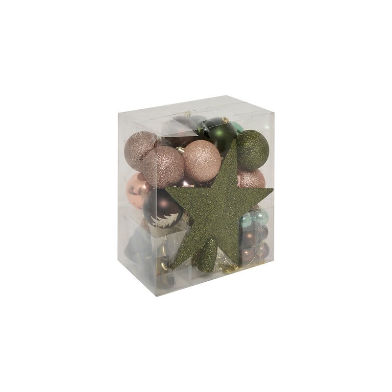 - Descripción de los surtidos: LOTE: CRESTA 20CM x 1 LOTE: ABETO PEQUEÑO 7CM x 2 LOTE: GUIRNALDA 270CM x 1 LOTE: BOLAS 30MM x 24 LOTE: 60MM x 16 OVILLOS