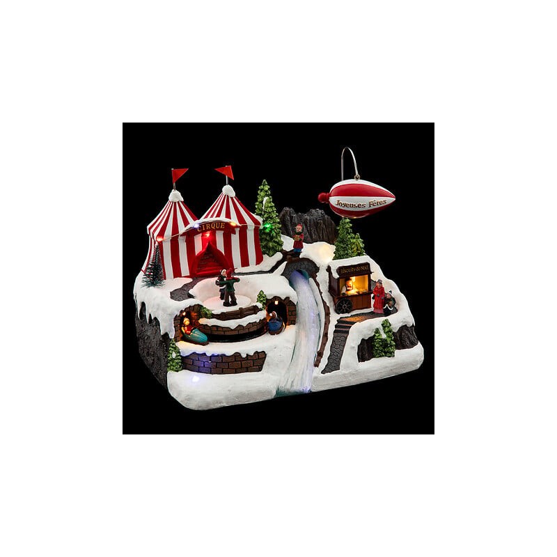 Este pueblo luminoso con dirigible combina música, movimiento y 12 luces LED para crear una escena navideña mágica y llena de encanto. Ideal para destacar en cualquier rincón festivo.