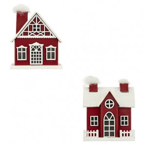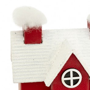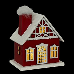 Pequeña casa luminosa de madera en tonos rojos, ideal para añadir un toque cálido y tradicional a tu decoración interior. Su luz LED crea un ambiente acogedor y festivo.