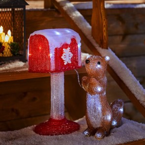 Esta figura acrílica de ardilla con iluminación solar y 30 LED blanco frío es perfecta para decorar exteriores con un toque natural y brillante. Ideal para jardines, entradas o terrazas navideñas.