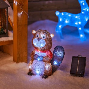 Figura acrílica exterior castor luminoso solar 18 LED fijos alto 27 cm