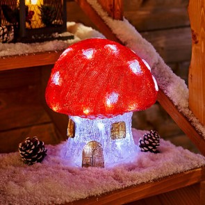 Esta encantadora casa hongo acrílica con iluminación solar y 30 LED con 8 funciones es perfecta para dar un toque mágico y luminoso a tu decoración exterior navideña. Ideal para jardines, terrazas o entradas.