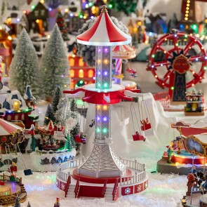 Este pueblo luminoso con escena de paracaídas combina 43 LED, música y movimiento para crear una decoración navideña dinámica y encantadora. Ideal para escaparates, mesas o rincones temáticos con aire festivo.