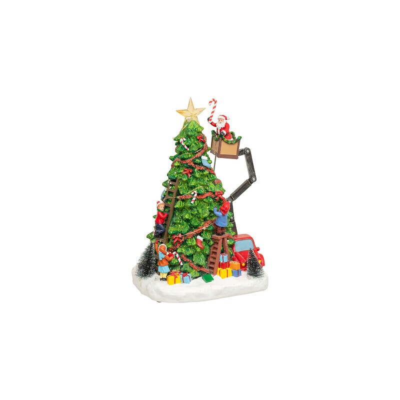 Este pueblo decorativo con árbol, Papá Noel y canasta combina 27 luces LED, música y movimiento para crear una escena navideña entrañable y luminosa. Ideal para decorar interiores con un toque cálido y festivo.