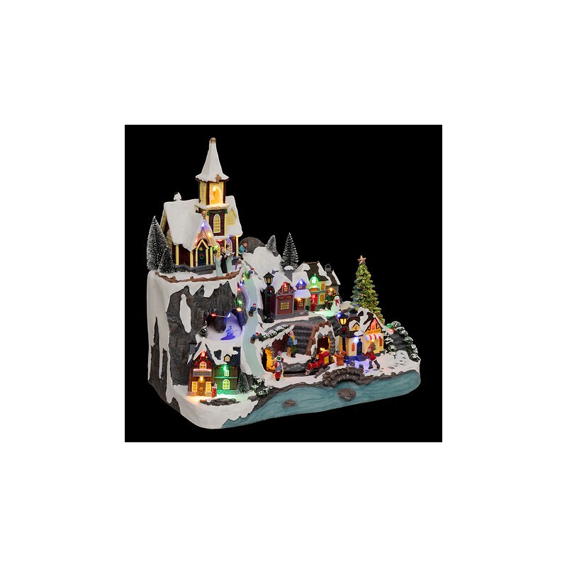 Pueblo luminoso iglesia y tren 34 LED con movimiento