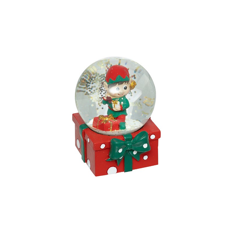 - Descripción de los surtidos: globo de nieve con elfo en base de regalo Color: rojo, verde, blanco