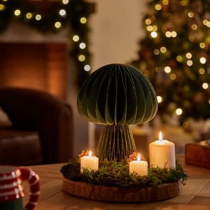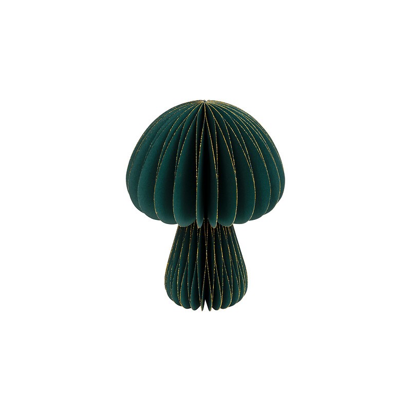 Hongo decorativo de papel verde, 25 cm. Un toque natural y festivo para mesas, estanterías o rincones navideños.