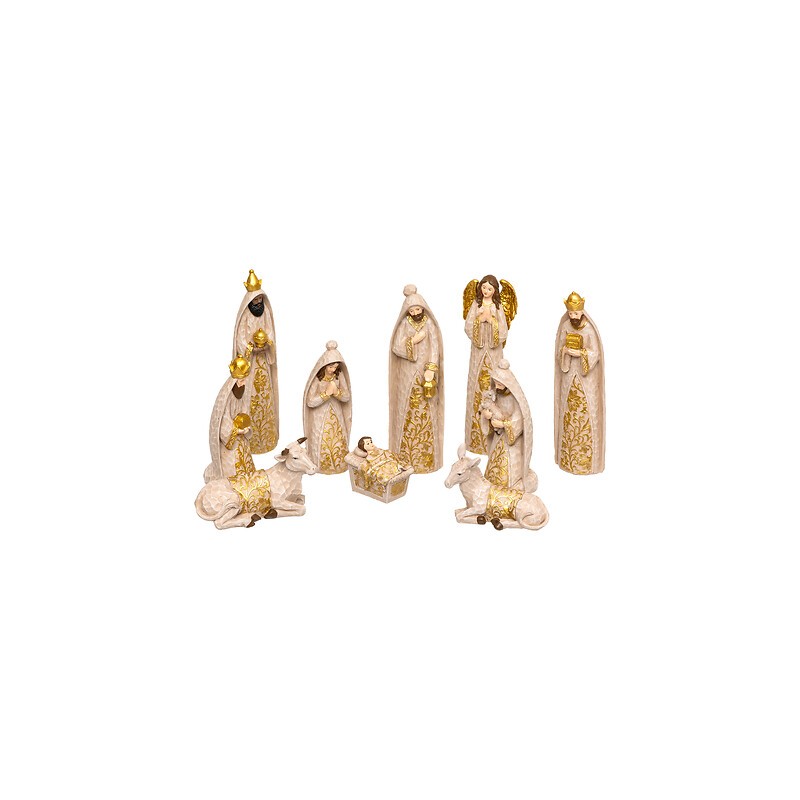 Set de 10 figuritas para belén de Navidad en resina, 20 cm de alto. Un conjunto completo y tradicional para ambientar escenas navideñas con encanto.