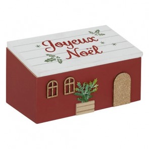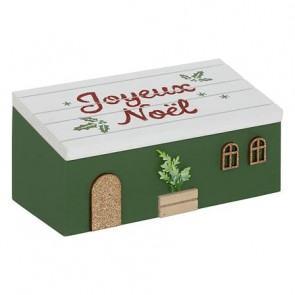 Juego de 2 cajas decorativas con diseño “Casa Feliz Navidad”, en MDF, ancho máximo 20 cm. Ideales para envolver regalos, decorar estanterías o crear composiciones festivas.
