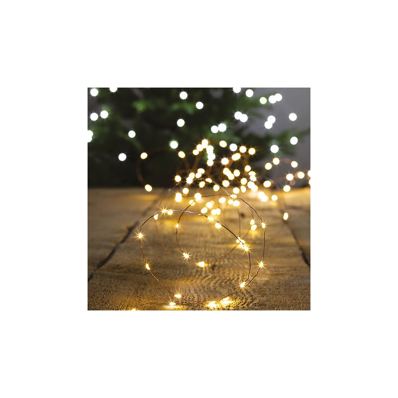Guirnalda luminosa interior 100 LED fijos blanco cálido largo 5 m cobre