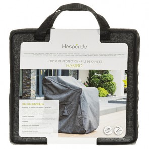 La funda para sillas apilables "Hambo" tiene un revestimiento repelente al agua. Esto significa que las gotas de lluvia sólo resbalarán por el tejido sin alcanzar sus muebles. Las ventilaciones evitan que la humedad penetre en el interior. La funda se sujeta con un cordón y cierres de velcro para evitar que entre el viento.