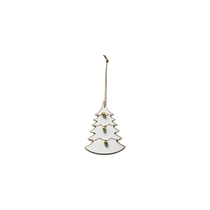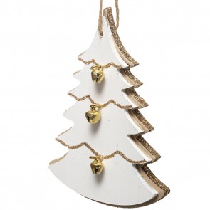 Descripción de los surtidos: ABETO BLANCO CON 3 CAMPANAS DE METAL ORO + ACABADO CHAMPAGNE BRILLO