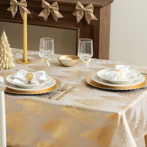 Viste tu mesa con elegancia natural gracias a este mantel beige con estampado de abetos. Su diseño sutil y festivo crea una atmósfera acogedora perfecta para celebraciones navideñas.