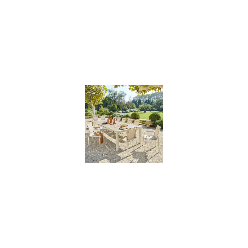 Mesa de jardín extensible ÉVASION Efecto madera Lino y Arcilla