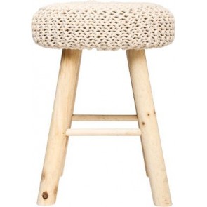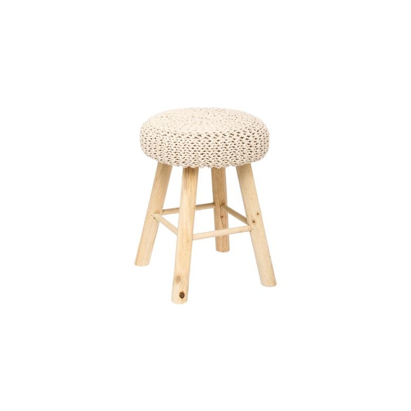 Vintage creativo, con su asiento redondo de algodón estilo crochet y patas redondas de pino, este taburete aportará un toque deliciosamente retro a su interior.