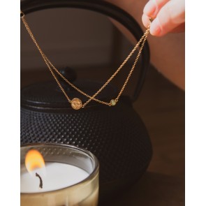 La joya está hecha de acero inoxidable, lo que la hace resistente a la corrosión, al agua e hipoalergénica. El revestimiento IP %28chapado IP oro de 18K%29 es más resistente a la corrosión que un chapado de oro clásico, lo que otorga a las joyas una durabilidad notable.