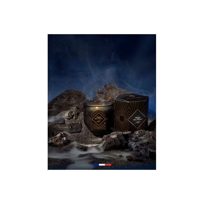 Enciende tu vela y descubre una pulsera reversible oculta en la cera. Revela tu estado de ánimo cambiando de lado. Radiante luz de sol o misteriosa luz de luna: dos energías, dos expresiones de tu personalidad. Disfruta de una fragancia sensual y empolvada donde la fresia, el jazmín y el almizcle se funden en una armoniosa combinación.