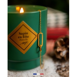 El rey del bosque irrumpe en escena con sus frescas notas amaderadas y su joya brillante, para un regalo impregnado de magia. En el corazón de la cera, descubre una pulsera de acero inoxidable bañada en oro fino y adornada con un cristal Swarovski.