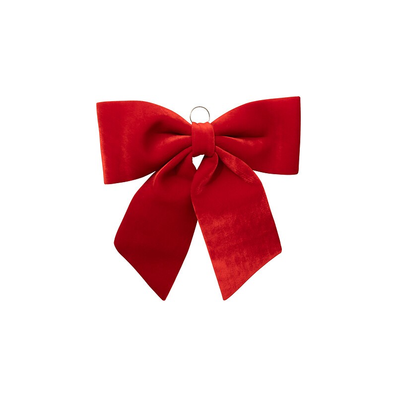 Lazo decorativo de tamaño XXL en terciopelo rojo, ideal para dar un toque elegante y festivo a puertas, árboles de Navidad, escaparates o envoltorios especiales. Su textura suave y acabado voluminoso lo convierten en un elemento protagonista en cualquier decoración navideña o de temporada.