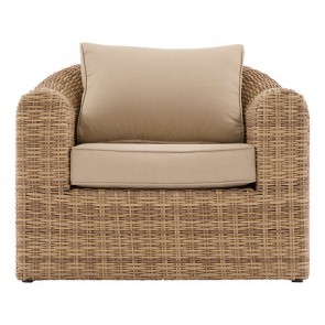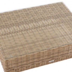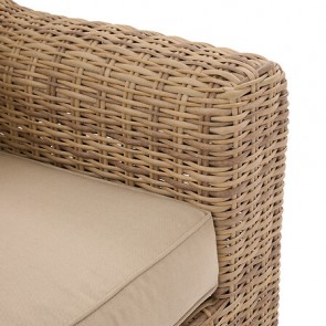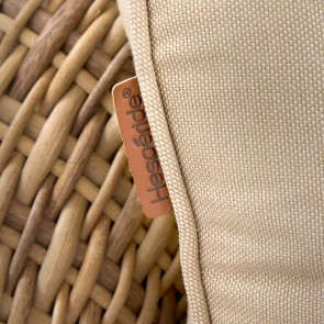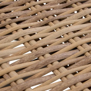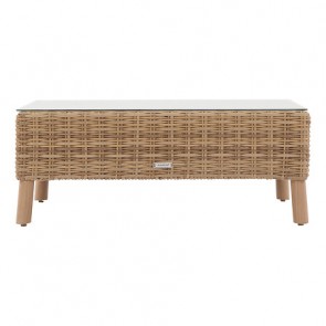 La estructura de este mobiliario está tratada con epoxi contra el óxido y el revestimiento de resina sintética puede limpiarse ocasionalmente con un producto dedicado. Los cojines repelentes al agua soportarán lluvias ligeras y son desenfundables para facilitar su lavado.