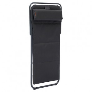 La estructura de acero ha recibido un doble tratamiento anticorrosión, por electrodeposición y gracias a una pintura epoxi. Se limpia fácilmente con agua jabonosa y la tela del asiento así como el reposacabezas son desmontables para facilitar su lavado.