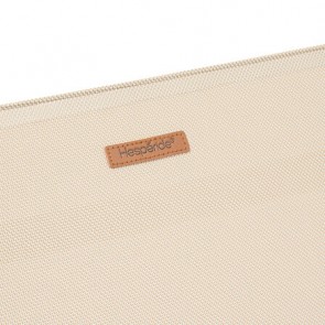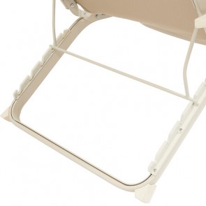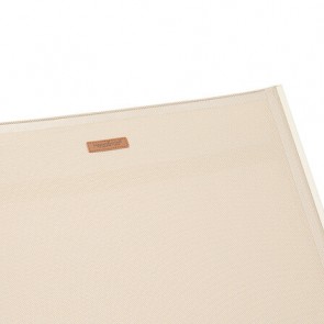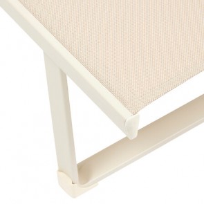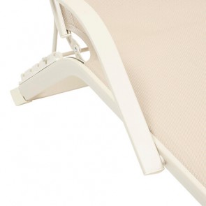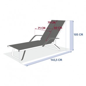 Esta tumbona está hecha de aluminio tratado con epoxi contra el óxido y se limpia con agua jabonosa. La tela de texaline es resistente a la humedad y está tratada contra la decoloración por el sol. Esta tumbona es compatible con una funda protectora para garantizar su longevidad