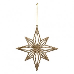 Lote decorativo de 2 figuras de estrella polar en color dorado, con altura de 17 cm. Su diseño simétrico y acabado brillante aportan un toque elegante y festivo a cualquier composición navideña. Perfecto para crear ambientes luminosos con detalles clásicos y refinados.