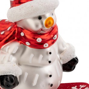 muñeco de nieve snowboard vidrio altura 10 cm rojo y blanco