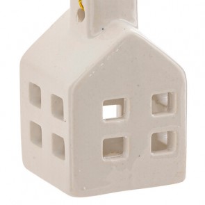 Figura decorativa de casa en cerámica blanca, con altura de 6 cm. Su diseño compacto y acabado delicado la convierten en un detalle encantador para composiciones navideñas o invernales. Ideal para aportar volumen, textura y un toque acogedor a cualquier ambiente festivo.