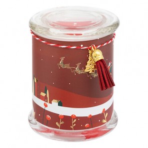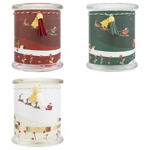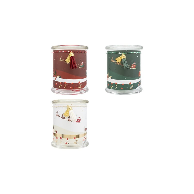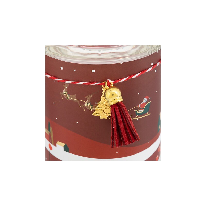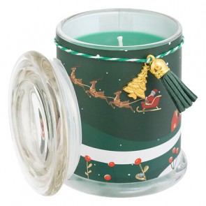Vela perfumada impresa de 265 g con vaso de vidrio, surtida. Un detalle aromático y decorativo para crear ambientes cálidos y festivos en cualquier rincón.