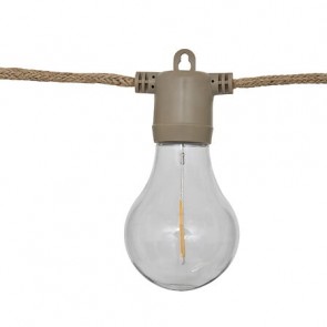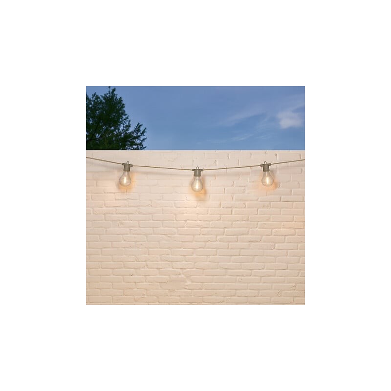Equipada con 10 bombillas vintage, la guirnalda exterior solar Gina se caracteriza por una bonita cuerda de yute de buena longitud. Está equipada con un panel solar para cargar la batería y disfrutar de luz al caer la noche. Para una velada exitosa, no hay nada como colgar su guirnalda exterior solar Gina sobre una mesa y sillones Atmosphera.