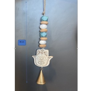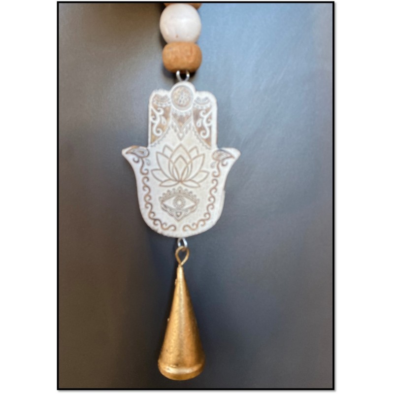 Colgante decorativo con Mano de Fátima, ojo protector, flor de loto y campana.