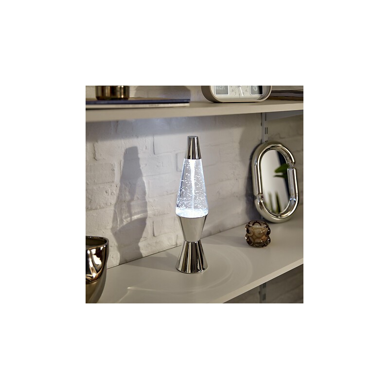 La lámpara Tornado Lava plateada es pura magia decorativa. Con sus 36,5 cm de altura y un elegante acabado metálico, crea un efecto tornado de luz que transforma cualquier rincón en un espacio vibrante y lleno de personalidad. Perfecta para estanterías, mesas auxiliares o ambientes lounge, aporta dinamismo y estilo contemporáneo. Su diseño combina agua, aluminio y vidrio, logrando un juego visual hipnótico que enamora tanto de día como de noche.