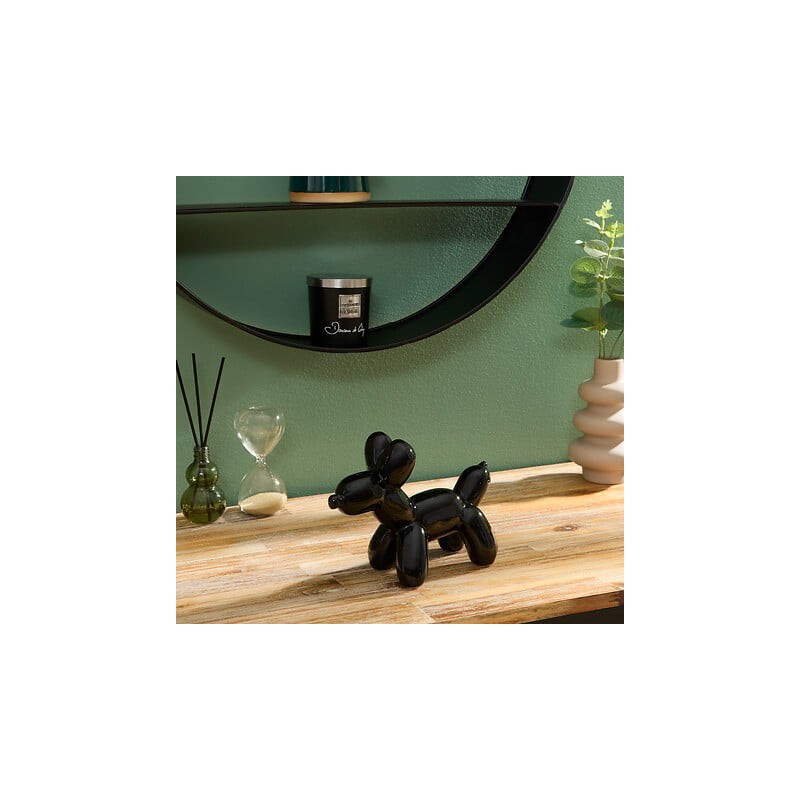 Figura decorativa en forma de perro, modelo Théo, realizada en cerámica con acabado negro. Su diseño estilizado y elegante la convierte en una pieza versátil, perfecta para estanterías, aparadores, mesas auxiliares o escritorios.