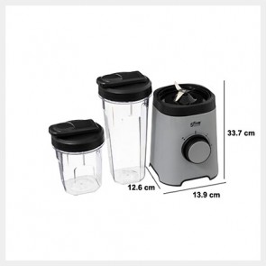 Incluye dos vasos de diferente tamaño con tapa, para que puedas batir directamente y llevártelo contigo sin ensuciar nada más. Su diseño compacto ocupa poco espacio y es muy fácil de usar gracias a su control giratorio frontal.