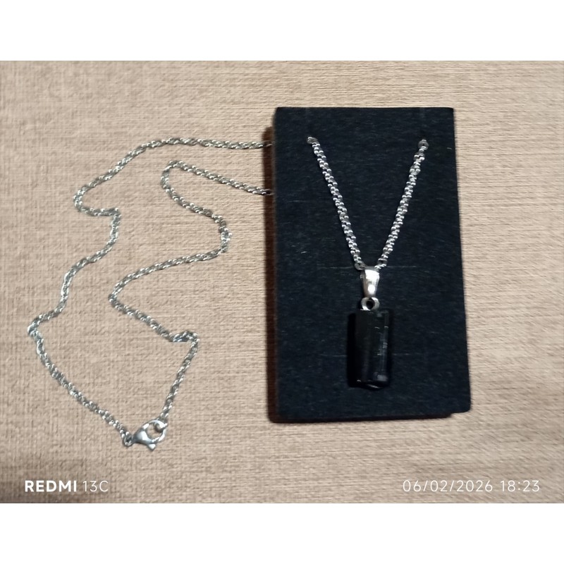 piedra de turmalina negra con Collar de acero bizantino